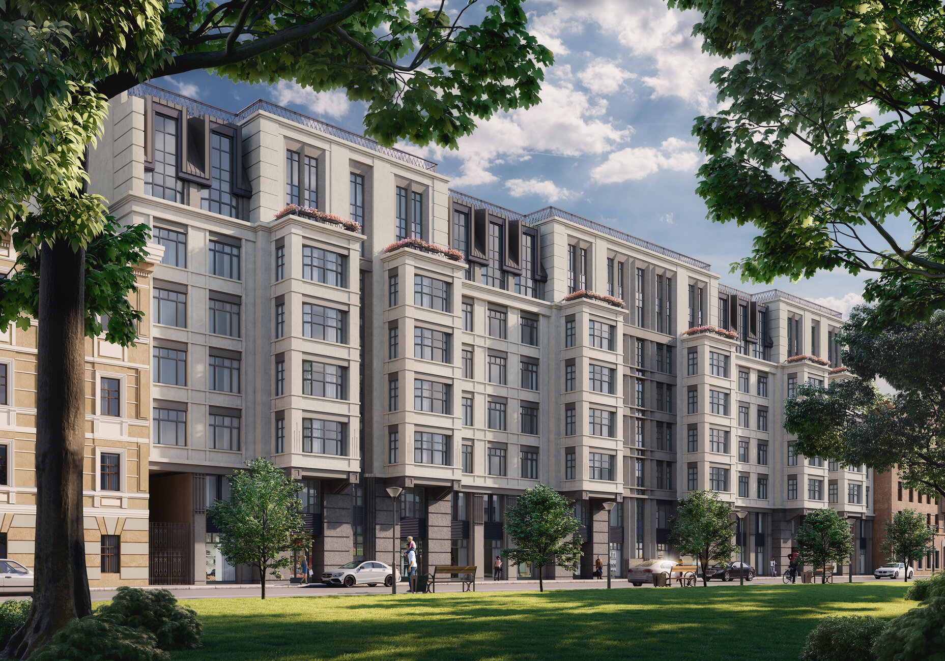 Новый элитный дом в исторической части Петроградского района, на пересечении набережной реки Карповки и Каменноостровского проспекта. Архитектурный облик проекта создан архитектурным бюро «Студия 44», фасады дома выполнены в стилистике Северного модерна.